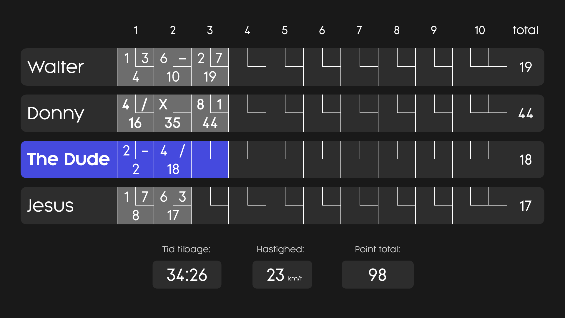 Bowling is often seen as outdated, both in its design and digital interfaces. For my BA project at DMJX, I set out to reimagine the bowling experience for a modern audience, one that values design, convenience, and atmosphere.
